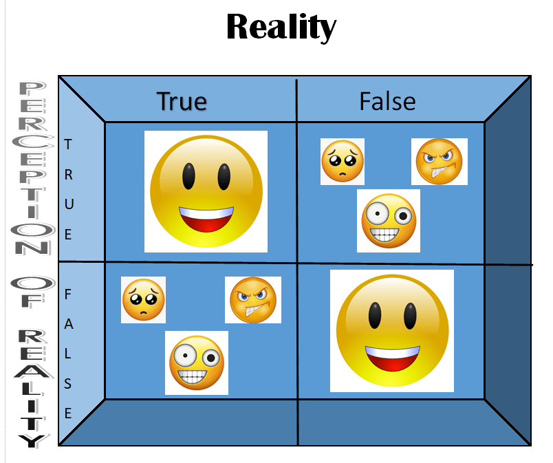 - False beliefs – In John 8:31-32, Jesus said – “If you abide in my word, you are truly my disciples, 32 and you will know the truth, and the truth will set you free.” Truth is freeing and if our minds are not centered on the truth, we will experience many issues, including mental health issues. Things are either true or they are not true, but sometimes, we get out of sync with the truth. When we believe things that are not true, it puts us at odds with reality. Look at the following diagram:
